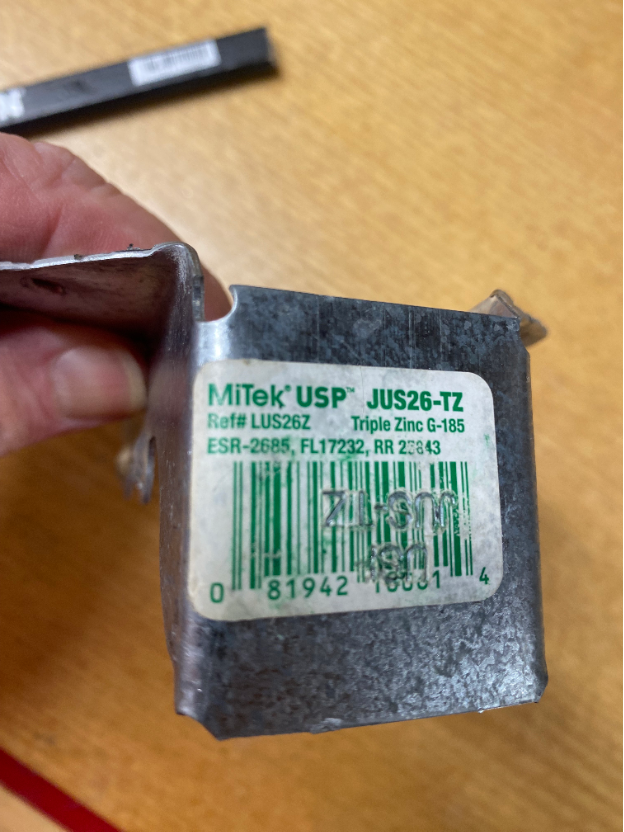 DEAR AARON: Your worst case scenario is a 15′ ceiling joist span. With ceiling joists at 24″ on center and a 10 psf (pounds per square foot) ceiling load, end of each ceiling joist has a downward (gravitational) load of 150 pounds. Your Mitek JUS26 hanger is comparable to a Simpson LUS26. An LU26 is rated to carry 865 pounds with a connection of (4) 0.148″ x 3″ nails (10d common) from hanger to a header (or, in your case a double truss) provided truss chord is Douglas Fir or Southern Pine. In your building, truss bottom chords are indeed Southern Pine. Half this nail quantity and your hanger should yet be good for 432.5 pounds of load at each end, well beyond actual loads being applied.