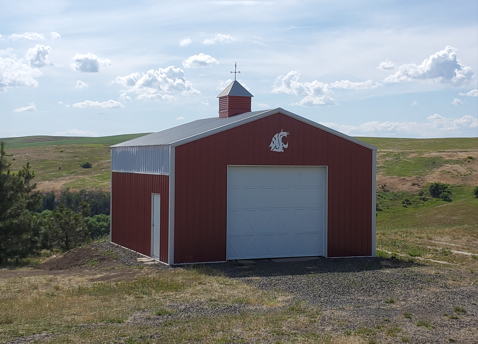 24x24x12.5 Pole Barn Kit with steel roof and siding. Includes 1 – 12×10 overhead door and 1 – 3′ entry door and a 36″ cupola. Also includes eavelights on left and right sidewall and dripstop on the roof steel. Engineering and deilvery included.