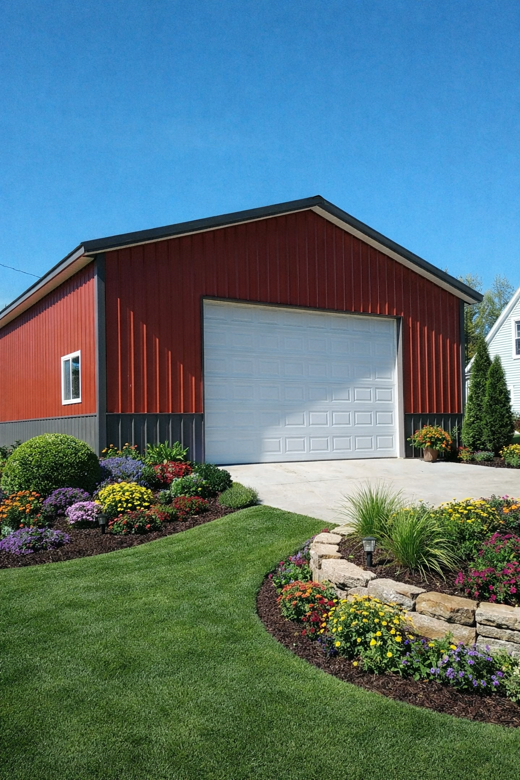 28x32x13 Pole Barn Kit with steel roof and steel siding and wainscot. Also includes 1- 14×10 insulated overhead door and 1- 3′ steel entry door and 1- 4×3 window. Building comes with dripstop and ridgevent. Engineering and delviery included.