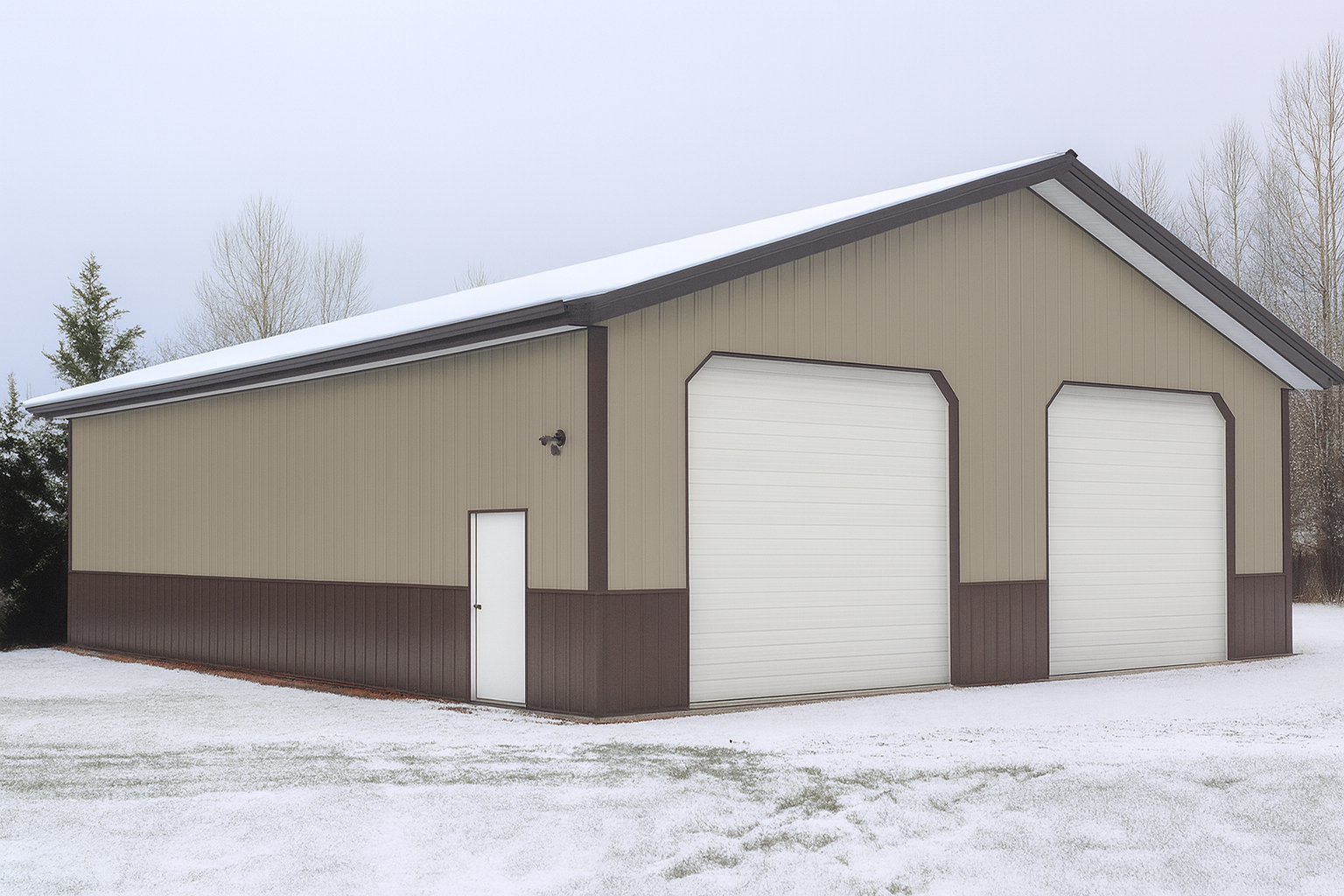 36x48x15 Pole Barn Kit with steel roof and siding with wainscot (Weston Model)