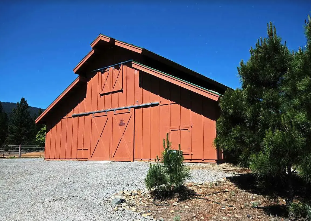 38x56x18 Pole Barn Kit with steel roof and T1-11 with batten siding. Includes 4 – 4×7 sliding doors, 2 – 12×9 bi parting doors, and 1 – 4×4 bale door. Drip stop including for roof steel along with widows peak on roof. Also includes engineering and delivery.