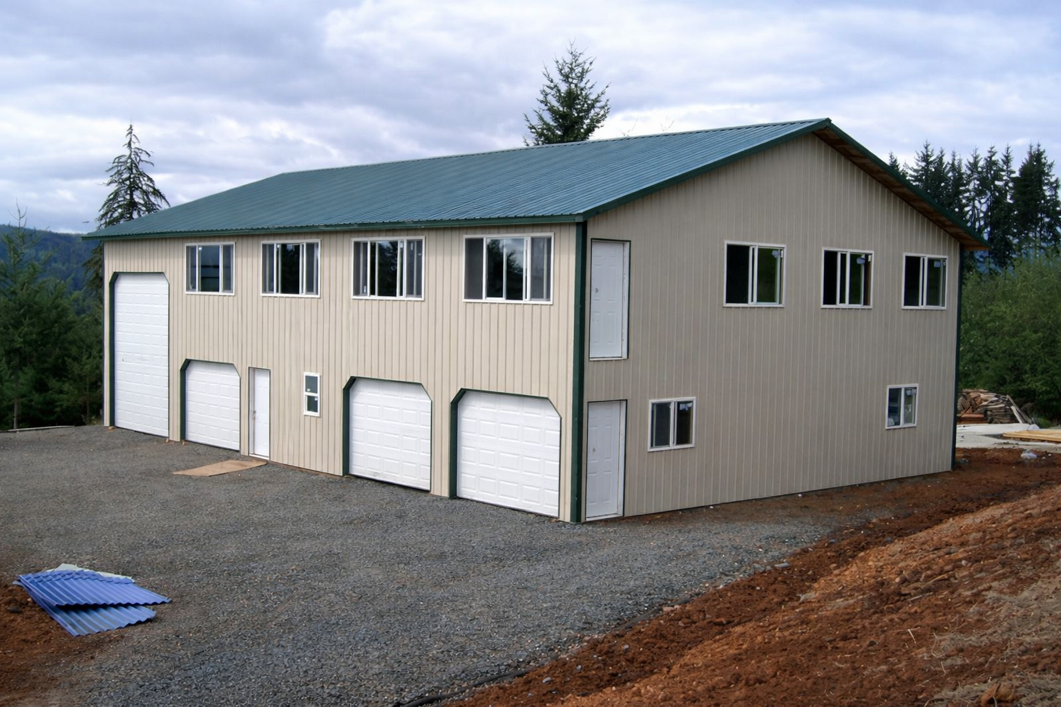 Includes steel roof and steel siding and Includes 3 – 10×7 overhead doors and 1 – 12×14 overhead door and 3 – 3′ entry doors. Also includes 4 – 6×4 windows, 3 – 5×4 windows, and 2 – 4×3 windows. Building comes with 40×48 column supported loft floor with stairs as well as ceiling load trusses with joists, commercial wall girts, ridgevent, and housewrap. Includes engineering and delivery.