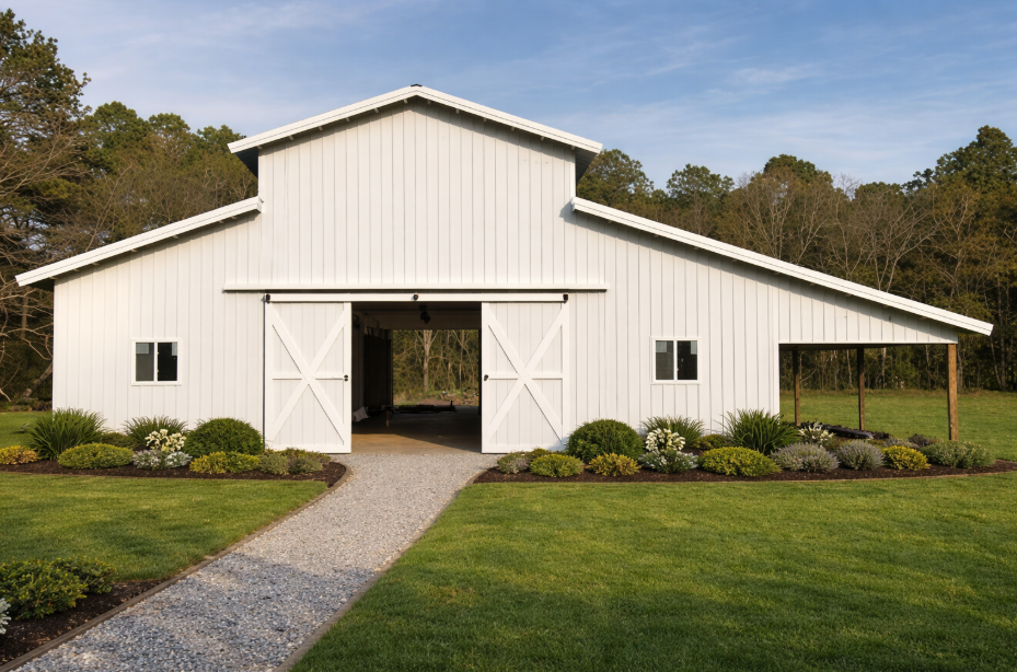 44x48x20 Monitor Barn Kit with steel roof and steel siding and 24×20 loft and 12′ side shed. (Tolliver Model)