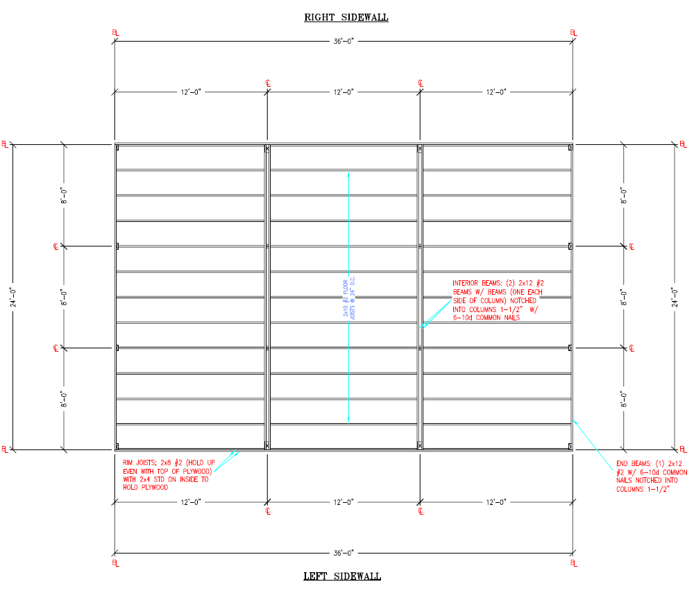 • Would I require regular stud walls between each post that first 12’ of building height for the floor trusses to rest upon to transfer the loads to the ground/ foundation?