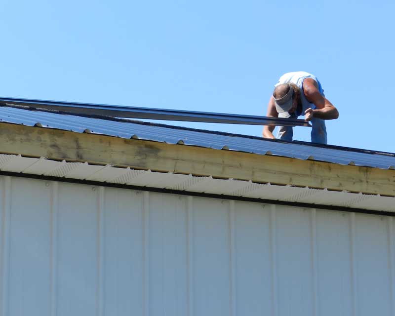 Top and bottom of every steel panel (roof and walls) should have a screw placed on each side of every high rib. Ask your builder to provide you with steel manufacturer’s fastening detail should he balk. This is crucial for proper structural performance of your building.