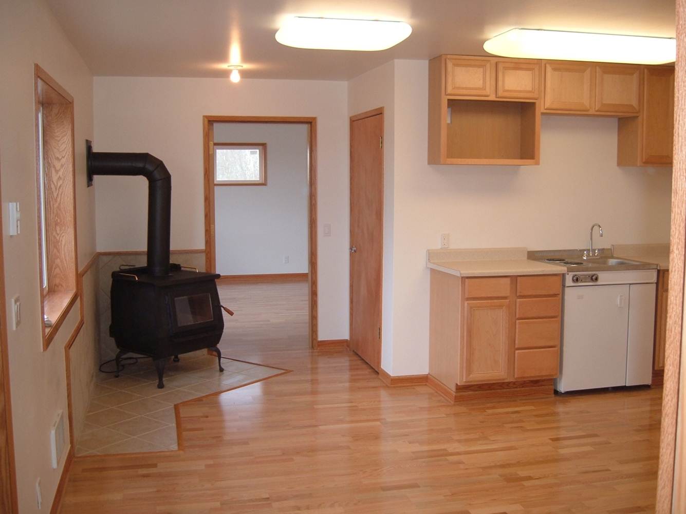 The area to be heated with the wood stove is also going to be very prone as a high moisture area. The dry heat from the wood stove will draw excess moisture through the floor (again back to the floor), so additional ventilation may be needed in this area.
